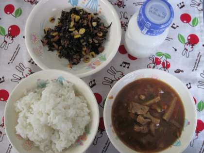 具だくさんの豚汁と大好きなひじきのいため煮で、楽しい給食をいただきました。