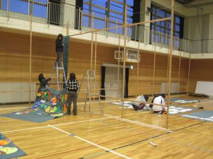 授業後、展覧会の準備を行いました。平面作品の展示を中心に行いました。
