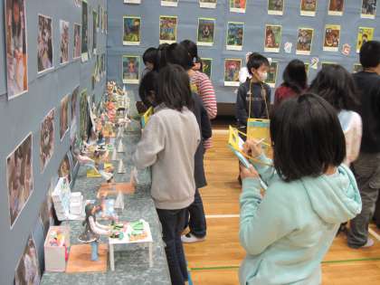 今日は、学年ごとに展覧会の作品鑑賞を行いました。友だちの作品や他学年の作品から多くのことを学びました。