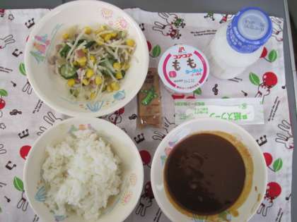 ごはん ビ−フシチュ− きりぼしだいこんサラダ ももヨ−グルト 牛乳