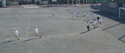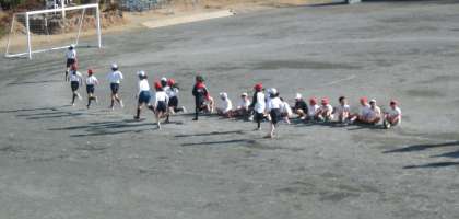 持久走大会にむけて、体育の授業の中でも持久走を行っています。目標達成のためにペースを守って走っています。