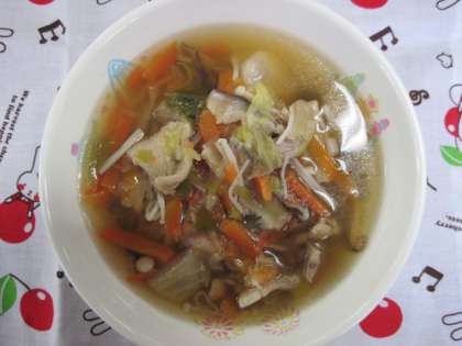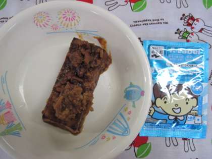 ちゃんこ汁をおいしくいただきました。甘味噌のひき肉がのった厚揚げはとてもおいしくいただきました。わかめふりかけもご飯が進みました。