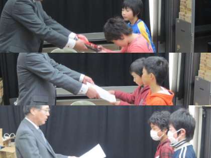 今朝は、テレビ放送で表彰伝達を行いました。