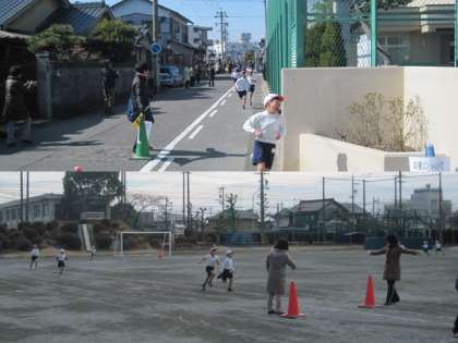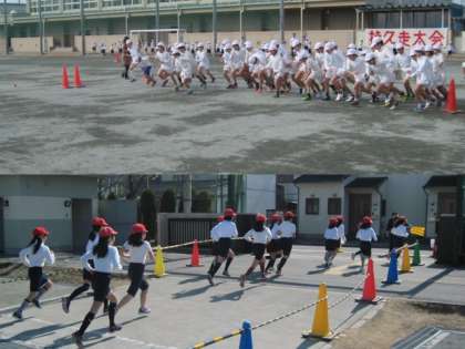 午前中、持久走大会を行いました。どの子も自分の目標めざしてがんばりました。