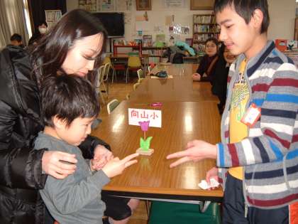 バスに乗って南部中学校まで行きました。中学生と南部中学校区の小学校の友達と交流会をしました。ハンドベルの演奏を聞いたり、ゲームをしたりしました。茶話会では中学生が作ったおでんをいただきました。新入生の紹介もあり、中学校への期待も膨らみました。