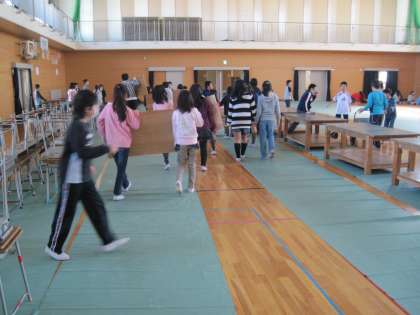 5時間目に、6年生の座席になるひな壇作りの準備を行いました。特別教室から机やベニヤ板を運びました。卒業式に向け、5年生が中心になって活動していきます。みんな意欲的に仕事を行いました。