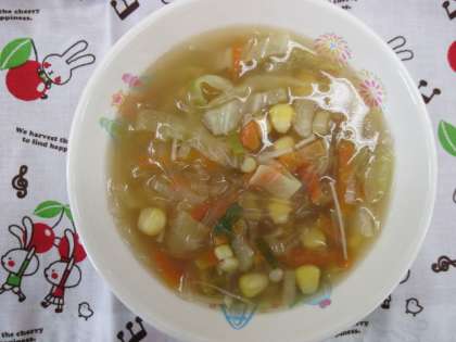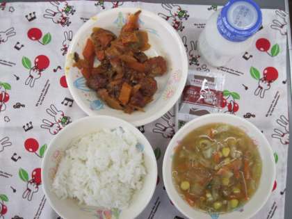 はるさめス−プもすぶたもとってもおいしくて、楽しんでいただきました。ココアパウダ−もついて、牛乳もおいしく飲めました。