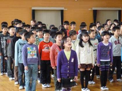 来週の月曜日に行われる「6年生を送る会」の練習をしました。実行委員を中心に作ったパフの替え歌を歌ったり、リコーダーで合奏したりします。元気いっぱいの3年生の歌声が屋運に響きました。