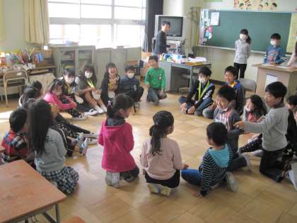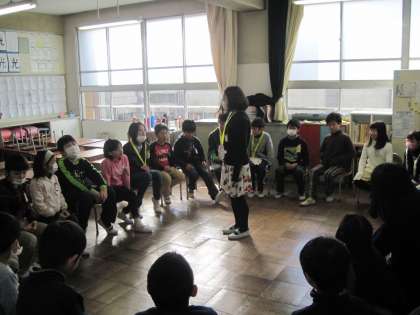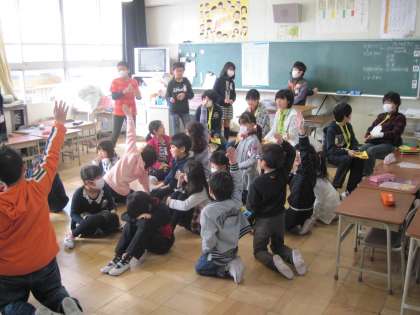 1時間目に、縦割り班のまとめの会を行いました。お世話になった6年生に、感謝の気持ちを込めてプレゼントを渡しました。その後、みんなでゲームをして楽しみました。6年生は、プレゼントの首飾りを今日一日首にかけて過ごします。