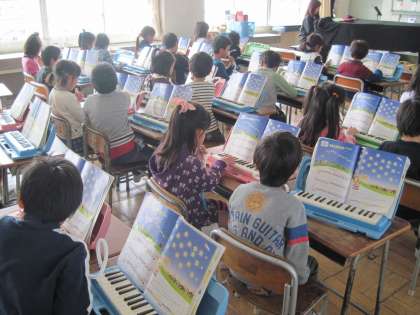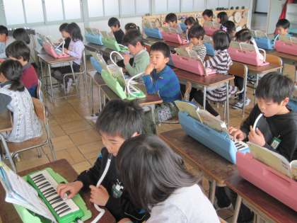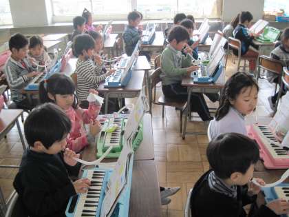 今日は、今までに習った曲を、けん盤ハーモニカで演奏しました。男女交互に演奏し、楽しくできました。