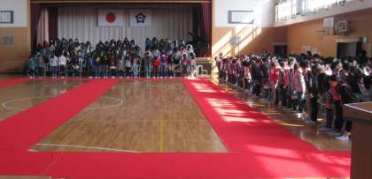 1時間目に、卒業式の練習を行いました。一つ一つの動きを確認しながら行いました。