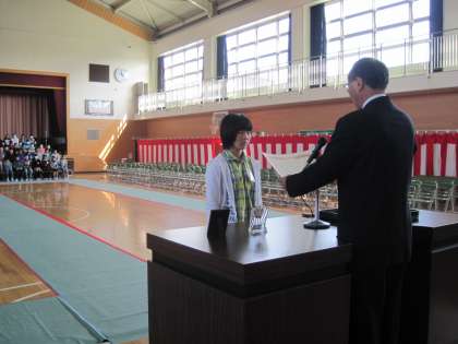 6年修了式の後、6年生の表彰伝達を行いました。