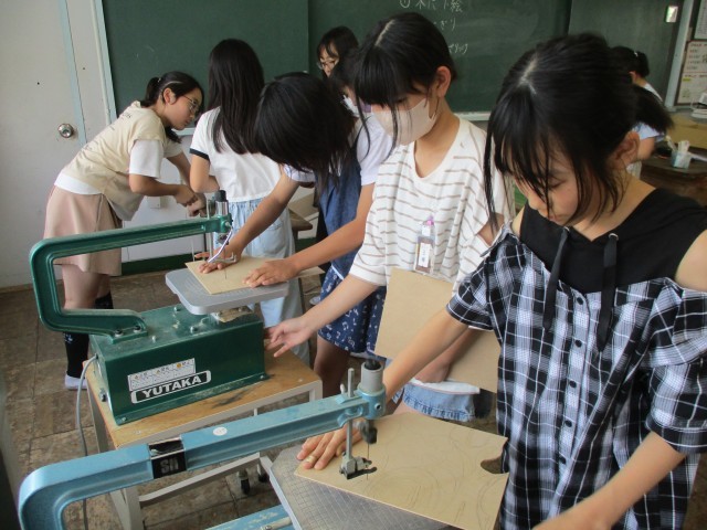 6月の図工の授業では、電動糸のこぎりを使って木を切っています。「こわい!」「むずかしい!」と言いながらも真剣に取り組んでいる様子が見られました。