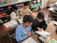 国語の授業では、すがたを変えて食品の材料になる食べ物について一人一人調べ学習を...