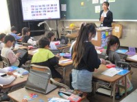 4年生が、おすすめの本を紹介する学習を行っていました。本をもう一度読み返し、自...