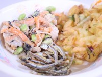 本日の献立は、ご飯、牛乳、ポテトコロッケ、即席和え、ちゃんこ汁です。