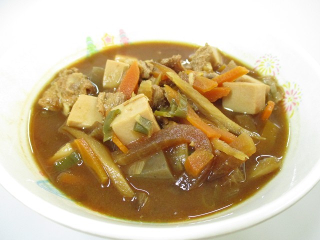 今日のぶた汁には、葉ねぎが入っています。ねぎは大きく分けて白い部分が多い根深ねぎと、根元まで緑の葉ねぎがあります。かつては根深ねぎは東日本、葉ねぎは西日本でよく食べられていましたが、今は地域に関係なく食べられています。