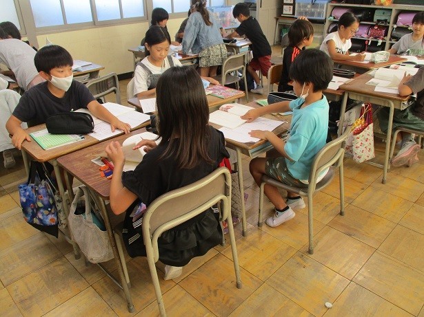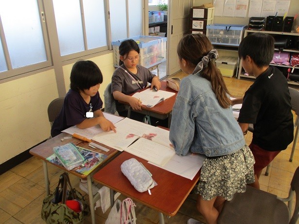 ちいちゃんのかげおくりという物語文の表現の工夫を見つけようというめあてで学習しました。各自で表現の工夫を見つけた後で、グループで話し合って確認しました。