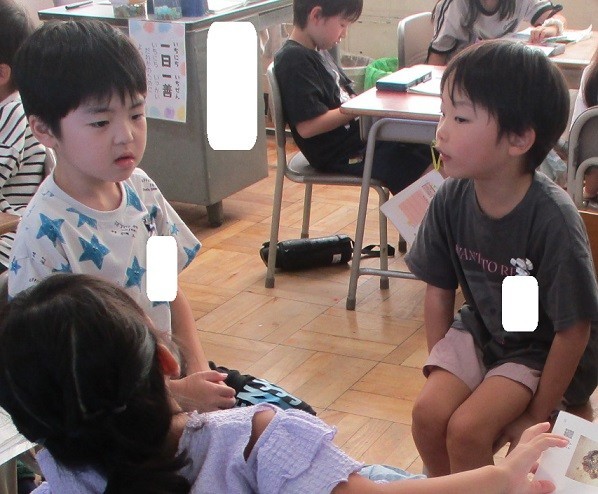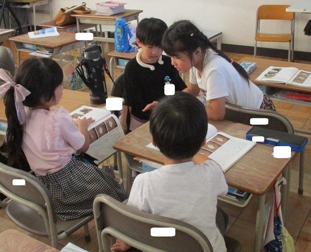 海のかくれんぼに登場する生物の順序はどのような順に並んでいるかを考えようというめあてで学習しました。グループでそれぞれの考えを伝え合いました。