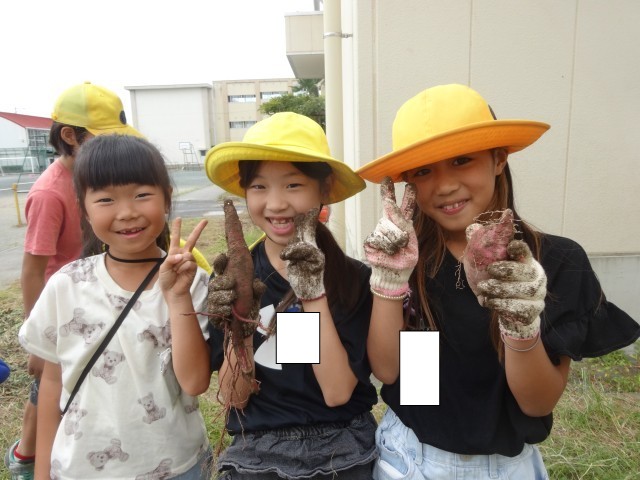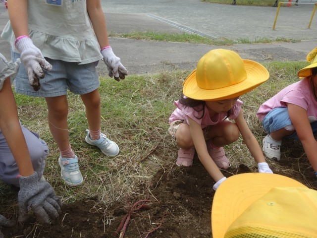 夏に野菜と一緒に植えたさつまいもが大きく育ってきたので、収穫をしました。