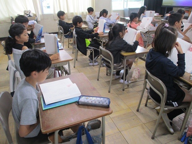 ちいちゃんのかげおくりの主人公の気持ちの変化を読み取ろうというめあてで学習しました。ちいちゃんの気持ちが分かるところに着目しながら音読をしました。