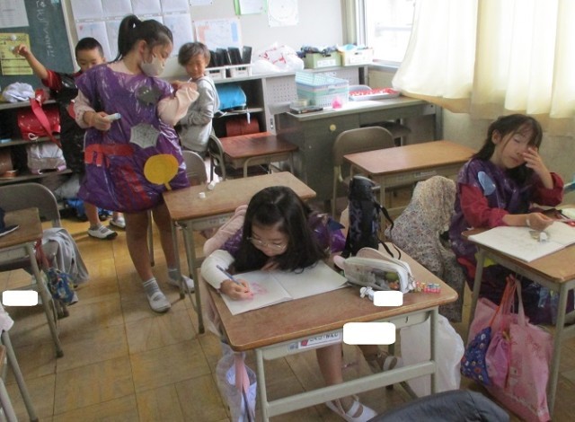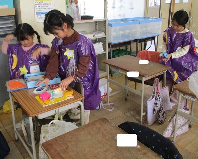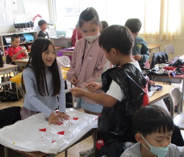 明日の運動会で使う衣装を直しました。貼り付けてあった飾りをつけなおしたり、新しい飾りを取り付けたりして衣装を完成させました。