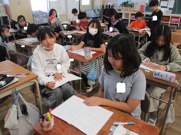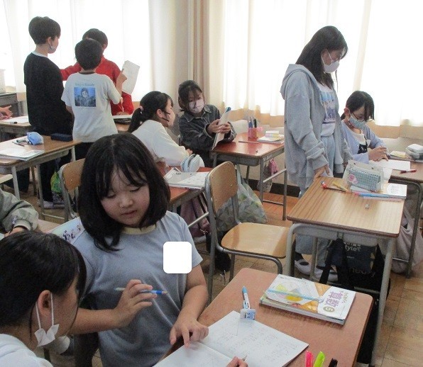 三角形の面積の求め方を考えようというめあてで学習しました。直角三角形の面積の求め方を思い出して分割したり、増やしたりして長方形にし、面積を求めました。