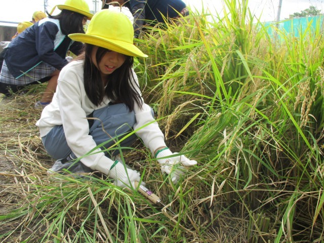 稲刈り体験をしました。稲刈りは初めての児童も多く、とても貴重な体験になりました。