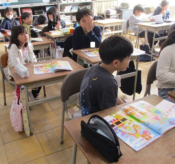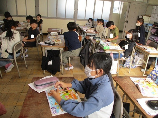 いろいろな形の英語の言い方を覚えようというめあてで学習しました。三角形、正方形、長方形、星形の言い方を覚え、発音しました。