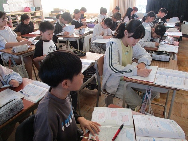 平行四辺形の面積の公式を考えようというめあてで学習しました。分割したり、ずらしたりして三角形や長方形の面積の公式を使って考えました。