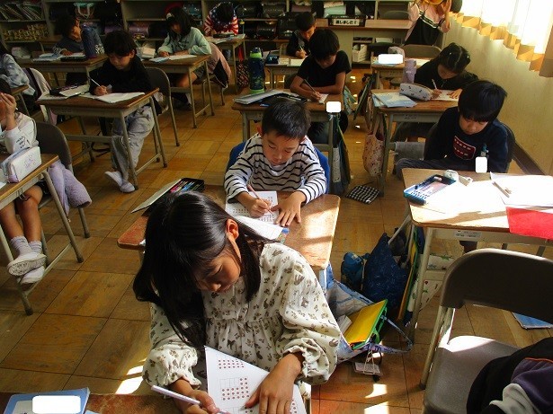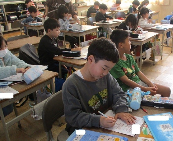 同じ数のまとまりの着目して式を考えようというめあてで学習しました。箱に並んでいるものの数を数えるために、同じ数が並んでいる列がいくつあるかを上手に使って式を考えました。