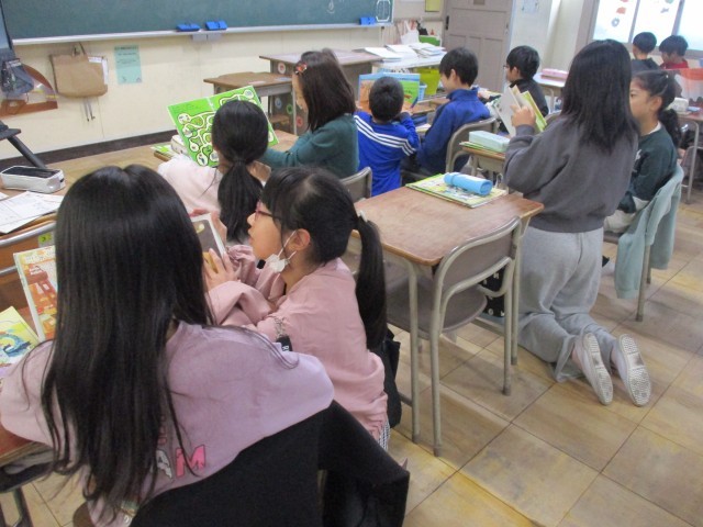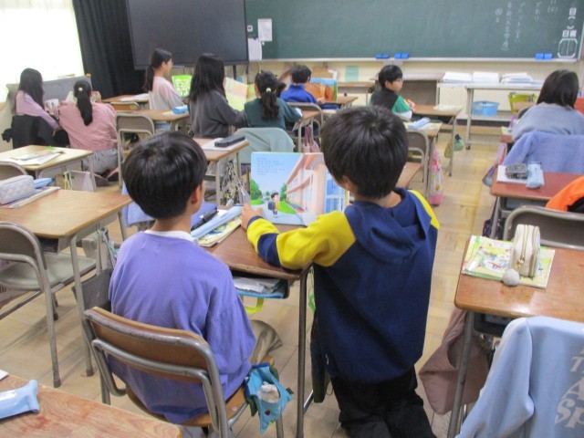 ペア読書で、5年生が読み聞かせをしてくれました。
