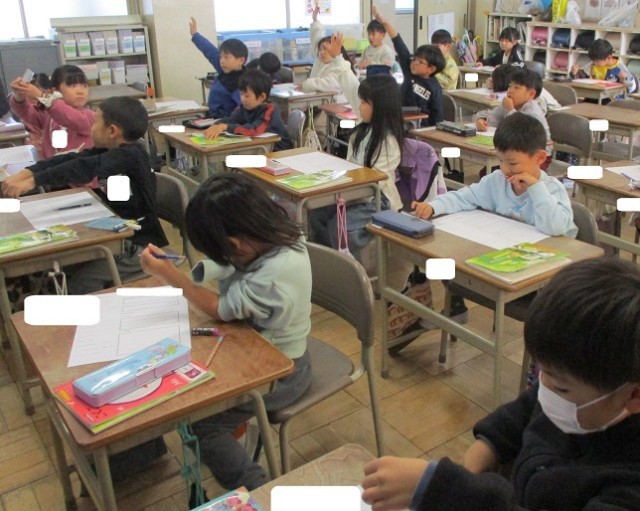 クレーン車の仕事とつくりを確かめようというめあてで学習しました。児童はクレーン車の仕事が分かる部分にきちんと線を引いていました。
