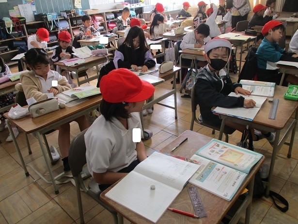 直線の数を見て仲間分けをしようというめあてで学習しました。三角形は3本、四角形は4本の直線に囲まれた図形であることを確認していきました。