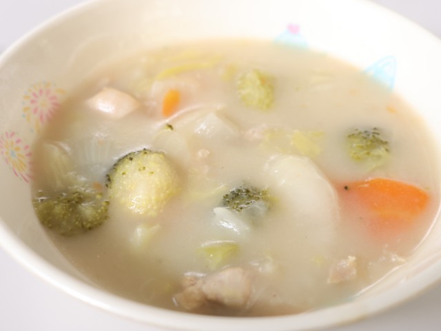 今日の冬野菜のシチューには、だいこん、にんじん、はくさい、ブロッコリーなどの冬が旬の野菜が入っています。冬野菜が甘く感じるのは、寒さで凍ってしまうのを防ぐため水分を減らすことで糖分を増やしているためです。寒さの中でおいしく育った冬野菜を味わって食べましょう。