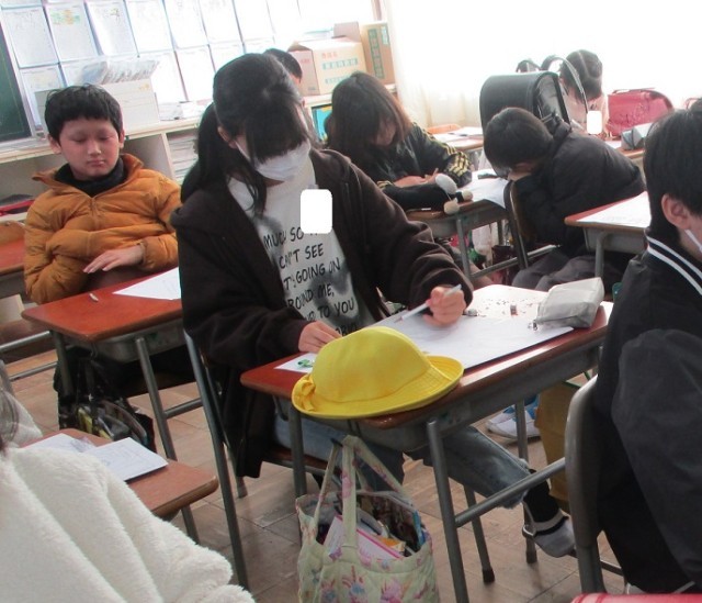 6年間お世話になったものを描こうというめあてで学習しました。ランドセル、通学帽子や文房具など、自分が世話になったと感じているものを真剣にスケッチしました。