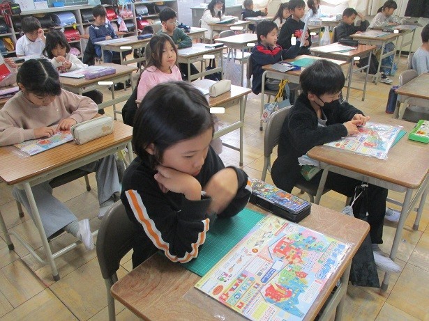 窓を開けようという作品の制作に向けて、カッターの安全な使い方を知ろうというめあてで学習しました。自分の方に引きながら切っていくことやカッターの持ち方を丁寧に確認しました。
