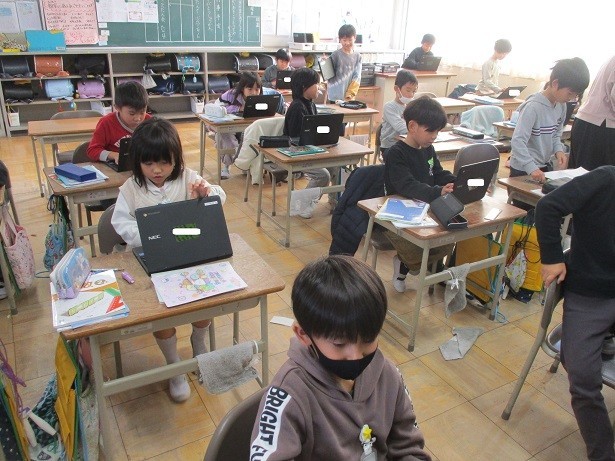 図にかいてどちらが長いか考えようというめあてで学習しました。図を2本かくと数の大小がよくわかることが確認できました。