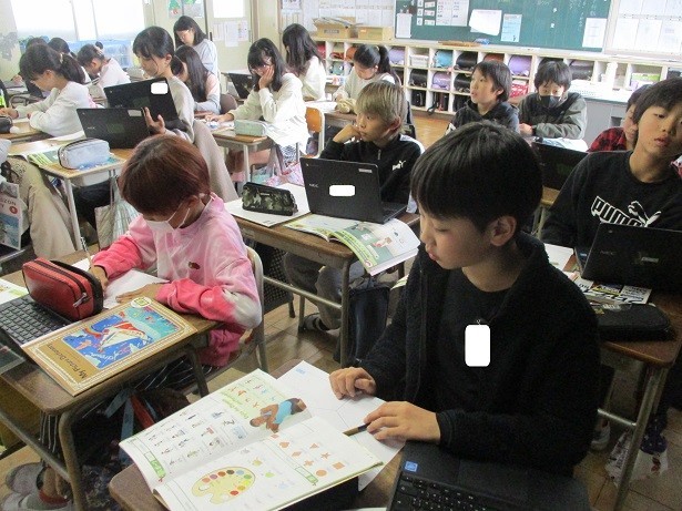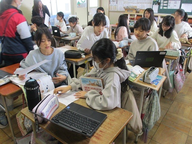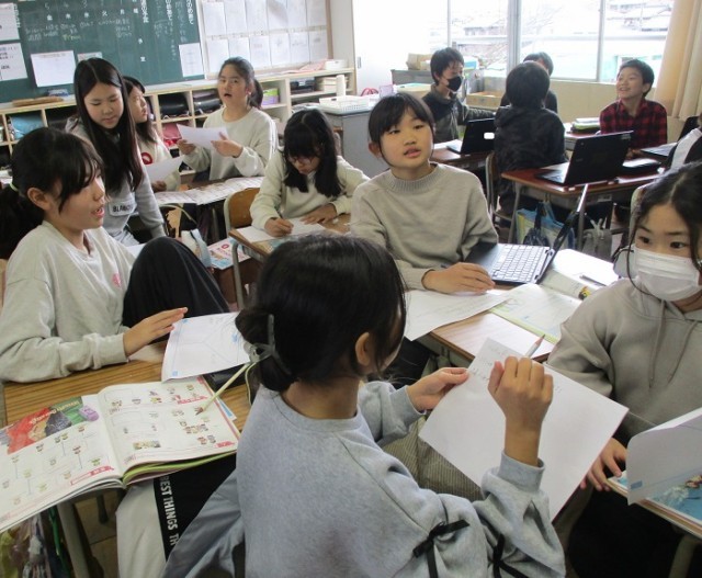 live、like、wantを使って英語で自己紹介文を作成しました。その自己紹介文を使って会話の練習をしました。聞いている児童は、さらに詳しい内容を聞くために質問をしました。