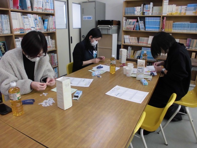 ただいま、PTAの委員さんたちがベルマーク活動実施中です。各家庭で集めていただいたベルマークを数え、ポイント化できるようにしています。ご協力いただきありがとうございます。