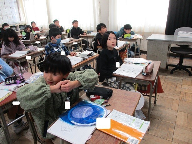 冬の星も明るさや色の違いがあり、時刻とともに位置が変わるのかを調べようというめあてで学習しました。オリオン座の1時間後の位置が南の少し高い位置に移動していたことで、他の季節と同じであることが確認できました。