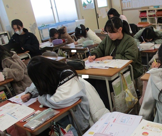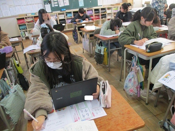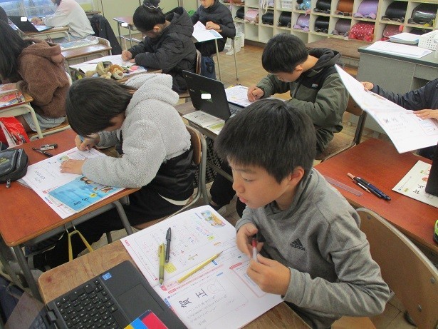 用紙に対する文字の大きさと配列を考えて読みやすく書きましょうというめあてで学習しました。文字の大きさのバランスを意識して丁寧に取り組みました。