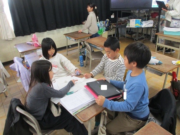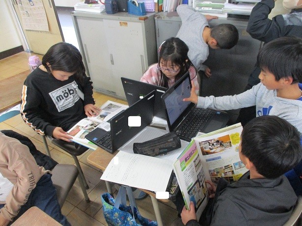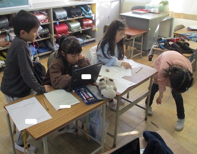 生活科発表会に向けてグループに分かれて準備を進めました。野菜、町探検で見学した施設などについて話し合いながら発表内容を考えました。