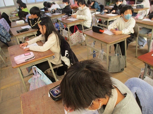 楽しめば好きになるという資料で、学習について考えました。漢字を学習するとき、漢字を使った文や熟語を考える方法と漢字の練習を10回する方法ならどちらがよいかについて話し合いました。