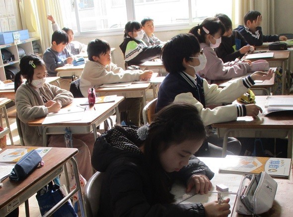 何倍にするとどうなるかについて考えようというめあてで学習しました。かけ算をすると大きくなるという児童の概念を変えるように0.5倍にすると答えが小さくなることを丁寧に確認しました。