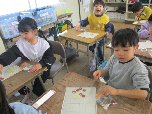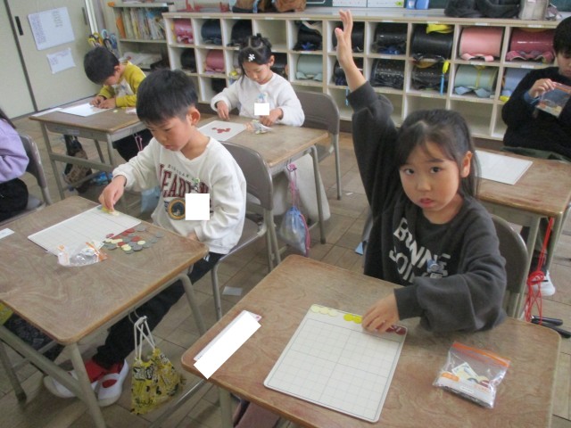 これまで学習してきた100までの数を復習し、買い物をするときのお金の出し方を考えました。友達との話し合いを通して、同じ代金でもお金の出し方がたくさんあることに気づいていました。実際にお金を使って買い物をしてみたい!という声も多く聞こえてきました。