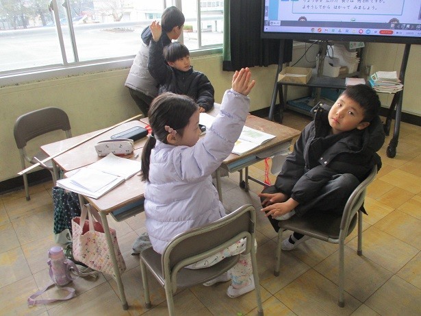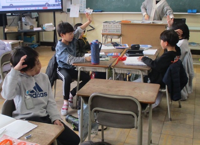 1mを超える長さを測ろうというめあてで学習しました。1mものさしをどのように使うかをグループで相談してリボンの長さを測定しました。