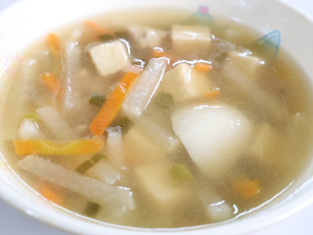 今日の吉野汁には、さといもが入っています。日本ではさといもは稲よりも早く栽培が始まっていたとされています。山に生えている「やまいも」に対し、人が暮らす里で栽培されたことから「さといも」と呼ばれるようになったそうです。