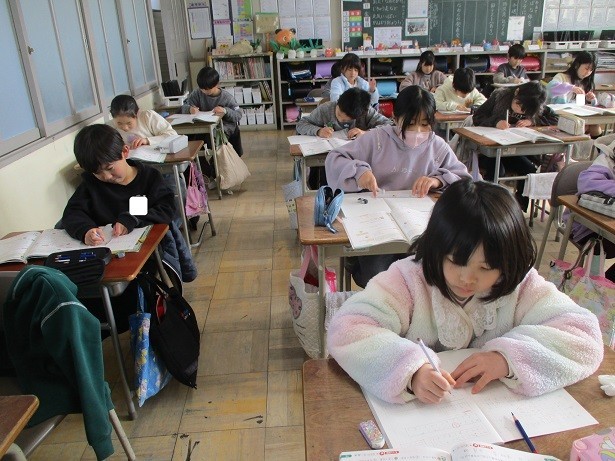 小数と分数の大きさのくらべ方を考えようというめあてで学習しました。数直線上に表せば比べられるということで、分数も数直線上に表してみました。