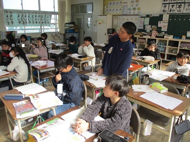 国際交流の盛んな町を調べようというめあてで学習しました。一宮市内での様子については、道路ですれ違ったやコンビニで働いている人を見たなど外国人が増えていることは児童も感じているようでした。